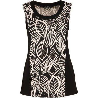 Dámská halenka - tunika dlouhý rukáv - velikost 56 - 58 - nadměrná velikost. Hluboký kulatý výstřih. Uprostřed předního dílu a na zadním díle potisk bílých listů. Střih do "áčka". Barevný potisk. Na bocích rozparky. Rukáv ukončen manžetou se zapnutím na 1 knoflík.