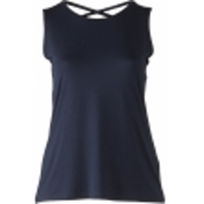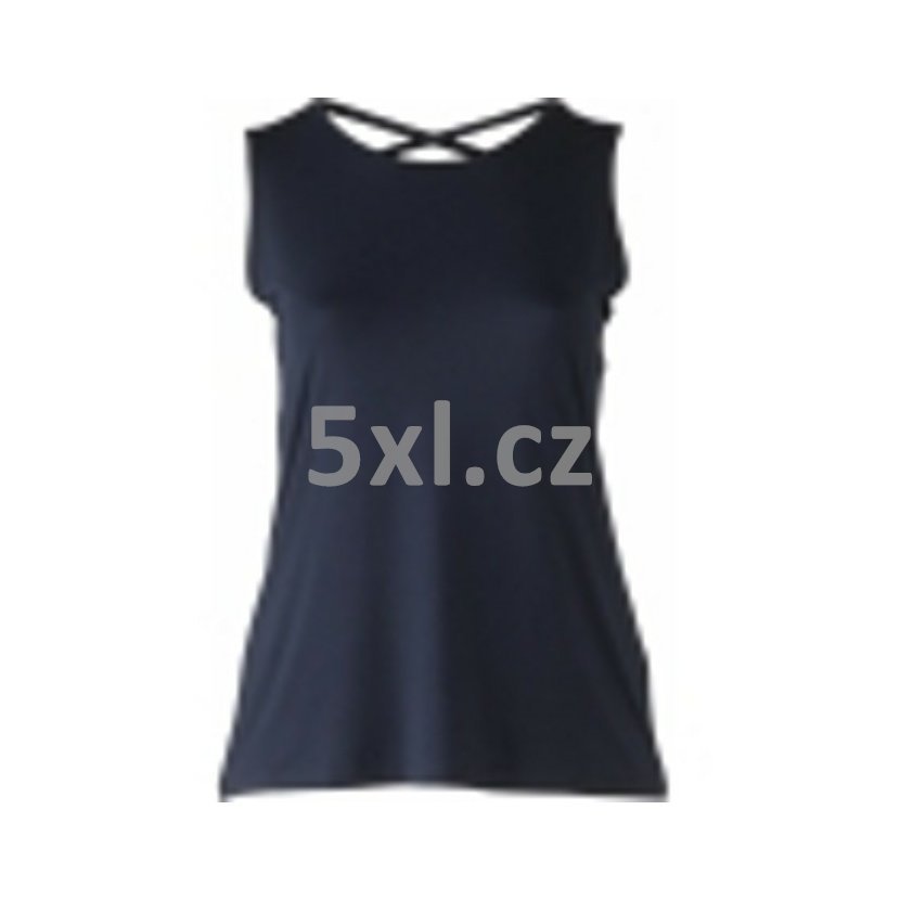 Dámský top - tričko bez rukávů tmavě modré - velikost 56 - nadměrná velikost. Kulatý výstřih, vzadu výstřih do "V" s pásky do kříže.