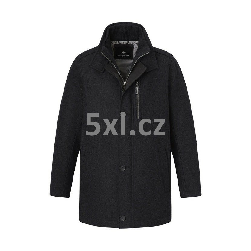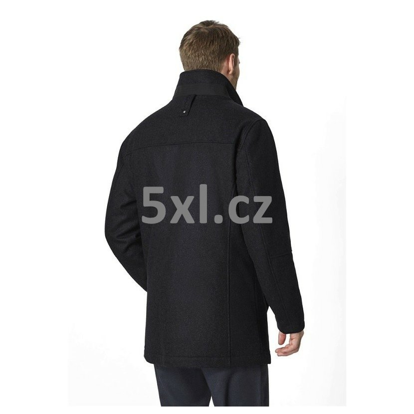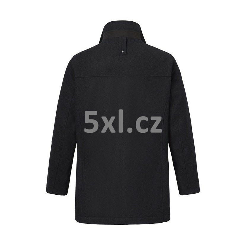 Pánská nadměrná vlněná bunda Redpoint 74314 – černá, střední délka, kabátový střih, nadměrné velikosti. Zapínání na zip s klopou na knoflíky, vnitřní kapsy na zip a knoflík, límec stojáček. Ideální pro chladné dny.