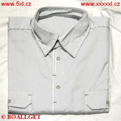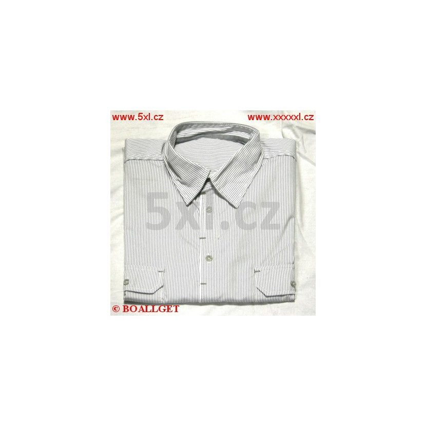 Pánská košile - nadměrná velikost. Barva bílá s šedými proužky, 2 náprsní kapsy s klopami na knoflíčky