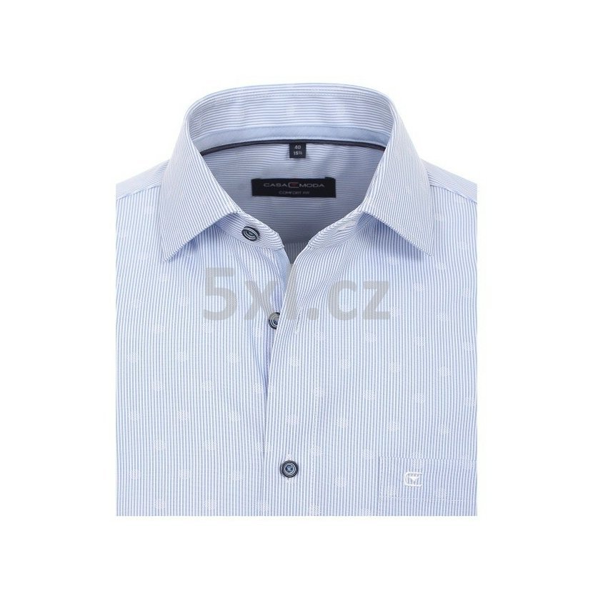 Luxusní a elegantní nadměrná košile z edice Premium s modrobílým decentním proužkem, všitými manžetami a límcem od světoznámé německé firmy Casa Moda. Košile vyrobené firmou CasaModa jsou vyrobeny z 100% vysoce kvalitní bavlny. Košile jsou příjemné na dotek, zároveň prodyšné a výborně se nosí. Řada Comfort Fit představuje rovný pohodlný střih. Úprava košile - nemačkavá, nežehlivá.