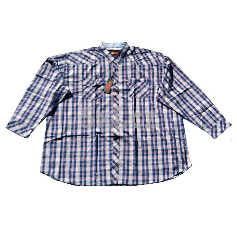 Pánská modrá kostkovaná košile dlouhý rukáv 7XL - 8XL v nadměrných velikostech. Zapínání na knoflíky. Levá náprsní kapsa na knoflík, pravá náprsní kapsa s klopou na knoflík.