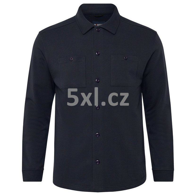 Pánská mikina NORTH 53147 tmavě modrá s límečkem 4XL - 8XL nadměrná velikost. Košilový střih. Zapínání na knoflíky. Levá a pravá náprsní kapsa na knoflík. Konec rukávů pružný lem.