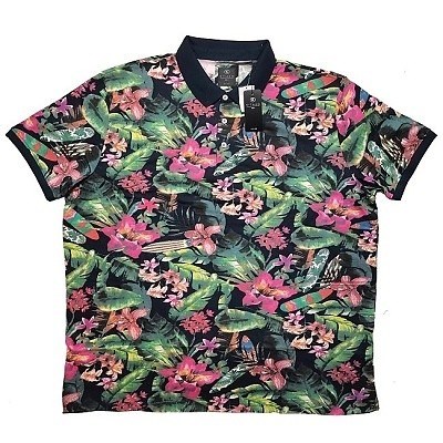Pánská polokošile - tričko s límečkem s potiskem květin krátký rukáv 5XL - 8XL - nadměrná velikost.