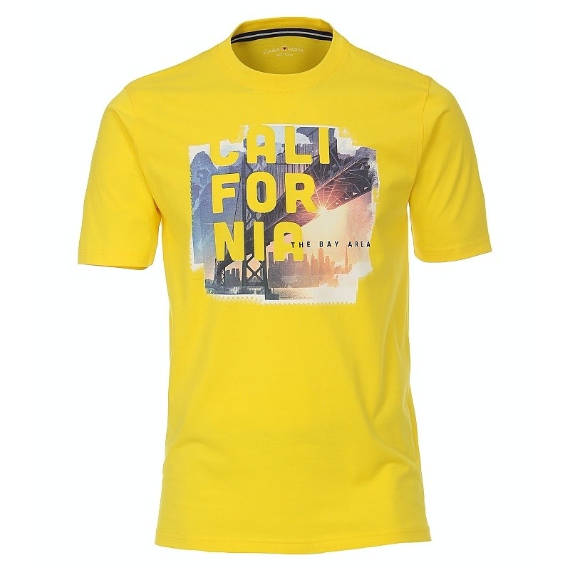 Pánská tričko Casa Moda 3XL - 6XL krátký rukáv žluté s potiskem. Toto tričko je vyrobeno z čisté bavlny a je velmi příjemné na nošení. Sportovní design s trendovým potiskem loga ideálně doplňuje každý sportovní vzhled a lze jej mnoha způsoby kombinovat.