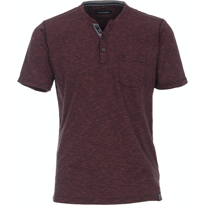 Pánská tričko Casa Moda vínové žíhané na knoflíčky krátký rukáv. Bez límečku, kulatý výstřih. Pružné.