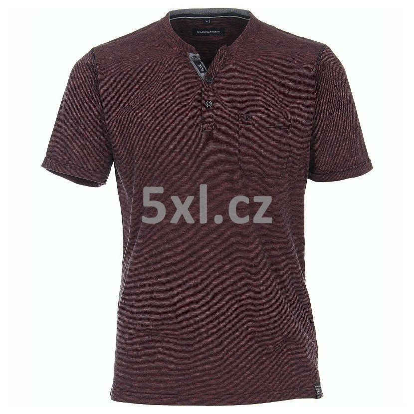 Pánské tričko Casa Moda 3XL - 6XLvínové žíhané na knoflíčky krátký rukáv Casa Moda