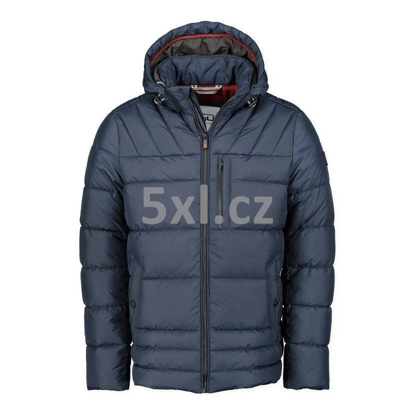 Pánská zimní prošívaná bunda 74393 S4 tmavě modrá s kapucí - nadměrná velikost. Odnímatelná kapuce. Zapínání na zip. Levá a pravá kapsa na druk. Levá náprsní svislá kapsa na zip. Uvnitř levá náprsní kapsa na zip, pravá na suchý zip.
