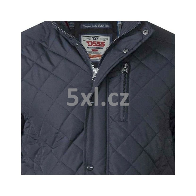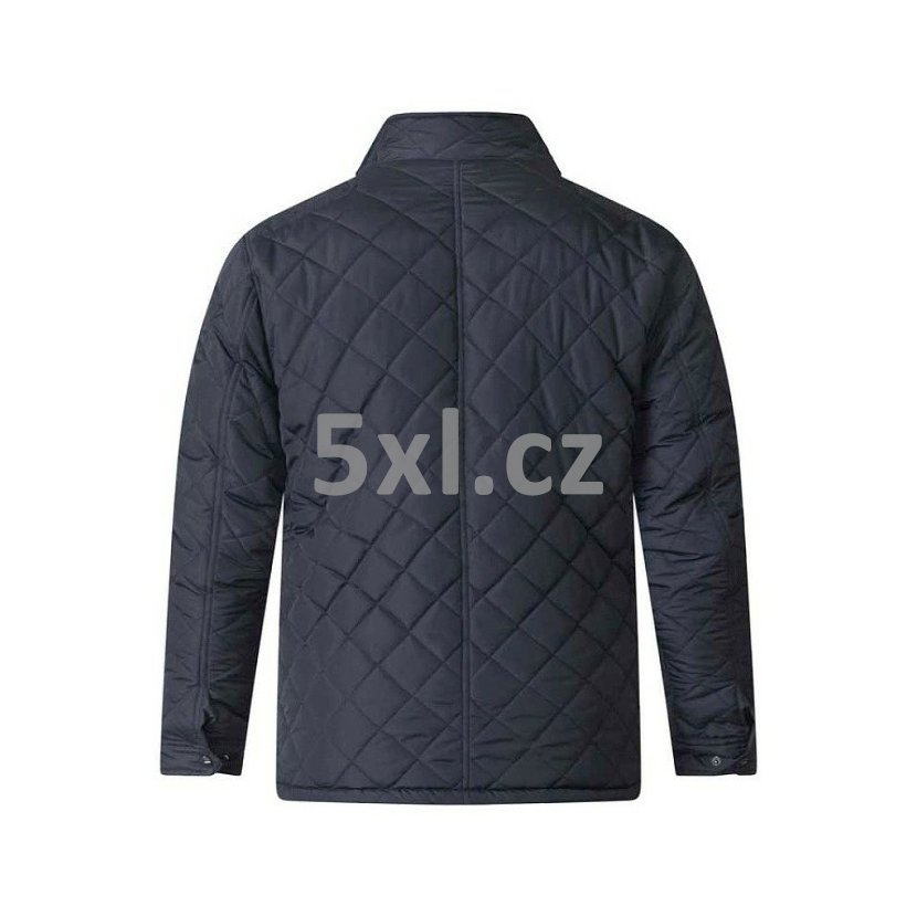 Pánská zimní černá prošívaná bunda Justin v nadměrné velikosti. Bez kapuce. Límec - stojáček. Zapínání na zip, který je krytý klopou s druky. Levá a pravá kapsa s klopou na druk.Tato kapsa je neprošitá, Levá náprsní kapsa na zip. Rukáv zakončen manžetou se zapínáním na druk.Díky dvěma cvokům je možno rukáv více či méně stáhnout. Spodní část bundy ukončena volně. Vnitřní část bundy fleece. Uvnitř levá náprsní kapsa.