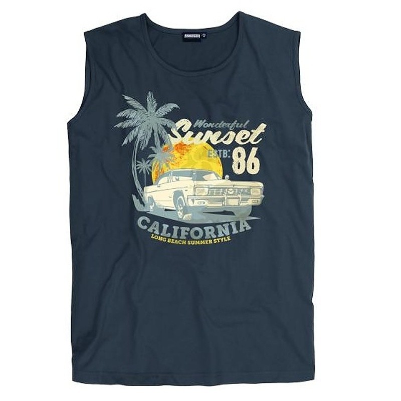 Pánské tílko bez rukávů ADAMO tmavě šedé potisk SUNSET 4XL - 12XL - nadměrná velikost. Kulatý výstřih.