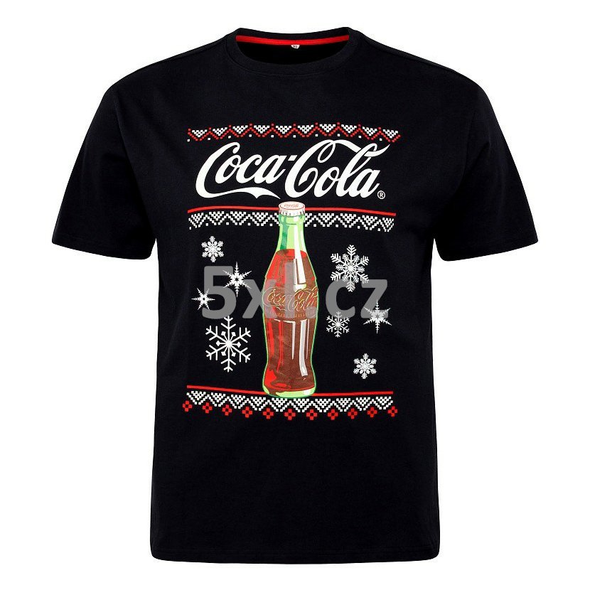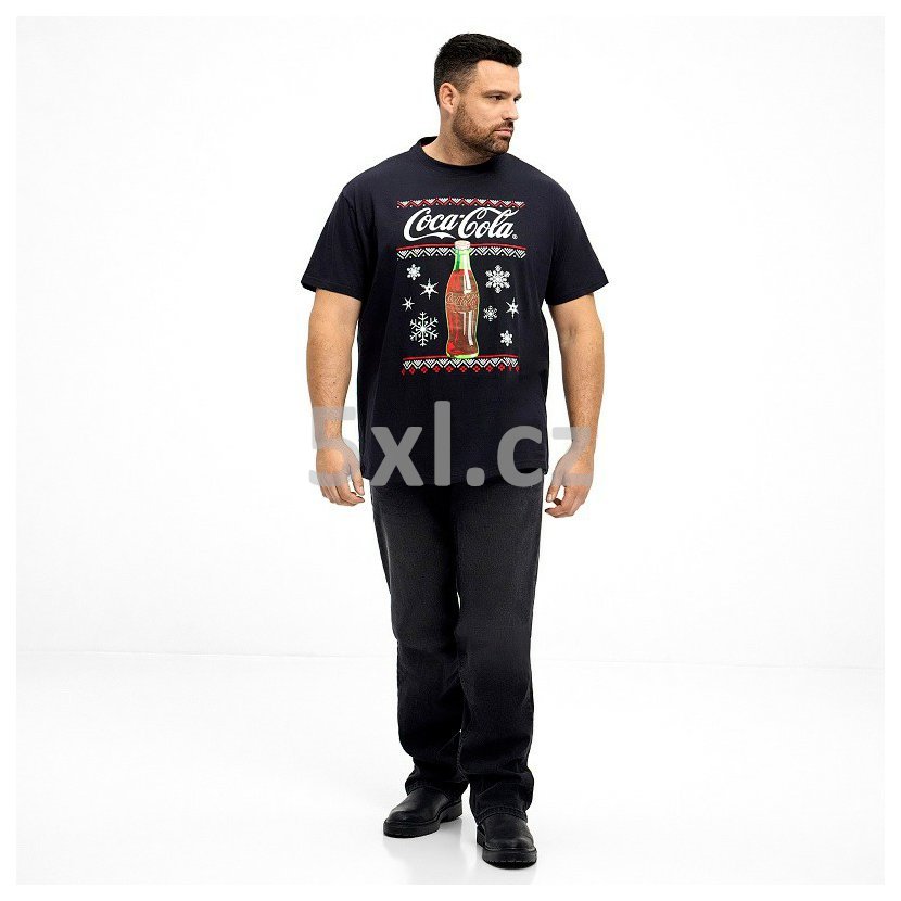 Nadměrné Pánské tričko 53356 NORTH černé s potiskem Coca Cola a vánočními vločkami představuje ideální volbu pro muže, kteří hledají pohodlné a stylové oblečení ve větších velikostech. Tento nadměrný model je dostupný ve velikostech 5XL až 8XL.