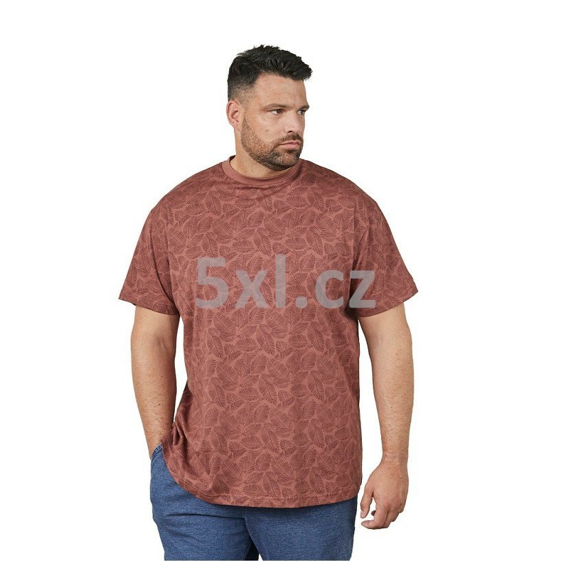 Pánské nadměrné tričko North krátký rukáv: Hnědé s potiskem lístků (61318-0740)