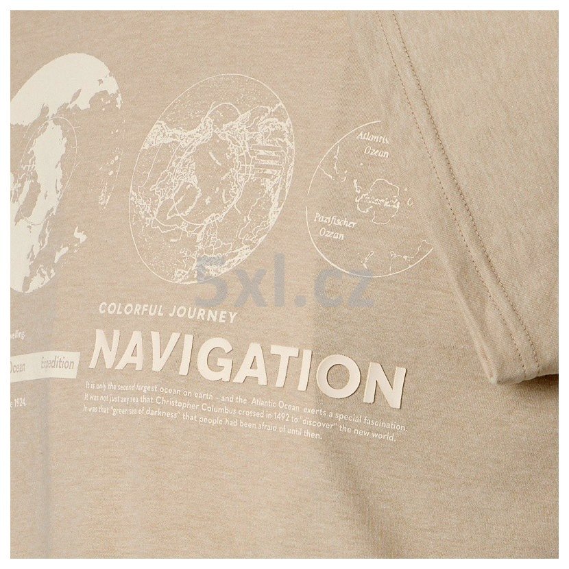 Kulatý výstřih a módní potisk ho činí dostatečně univerzálním a lze jej kombinovat s bermudami, kalhotami, svetry, mikinami, bundami nebo ležérními košilemi. Je to ideální volba pro volný čas, neformální setkání, procházky, rodinné oslavy nebo dovolenou. Směsový materiál zajišťuje, že tričko výborně sedí a zachovává si svůj tvar.