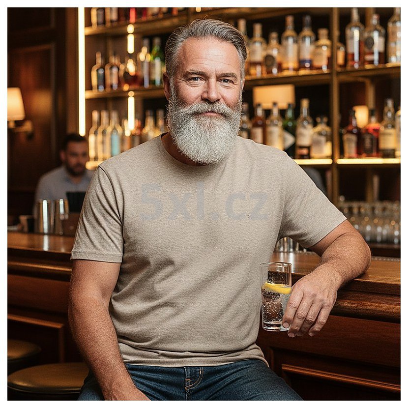 Střihové řešení se soustředí na komfort urostlých mužů v kategorii nadměrných oděvů. Volnější provedení zaručuje, že tričko nikde netlačí a umožňuje přirozený pohyb. Světle hnědá barva dodává tričku elegantní a zároveň neformální ráz, který se skvěle doplňuje s volnočasovými džínami nebo plátěnými kalhotami.