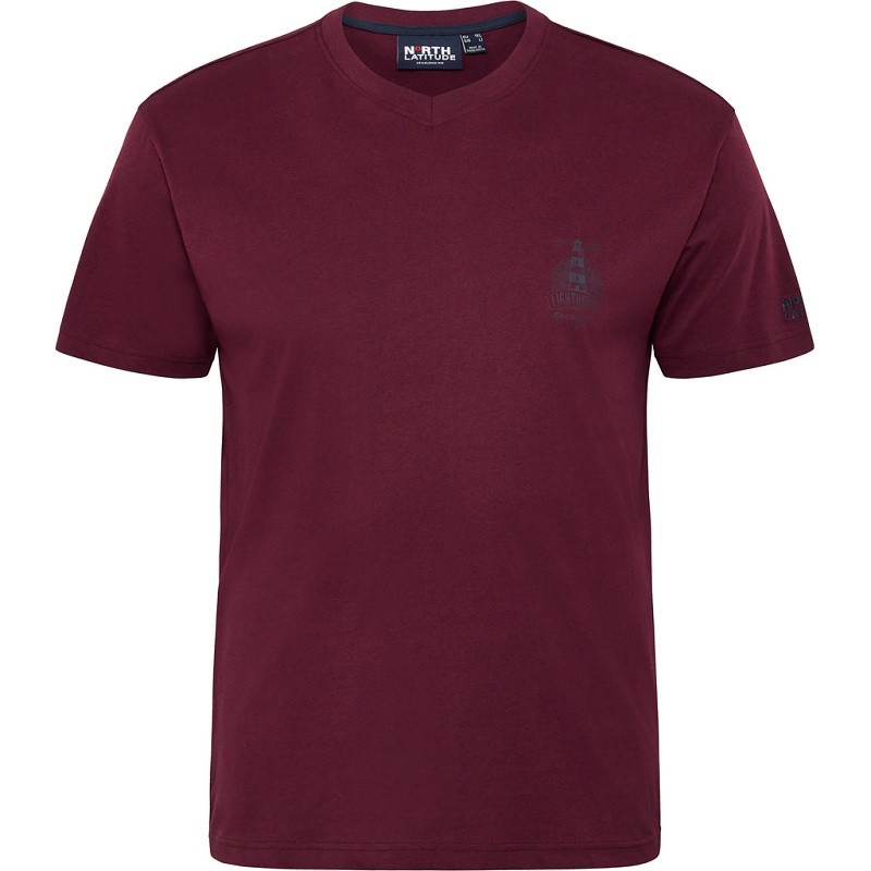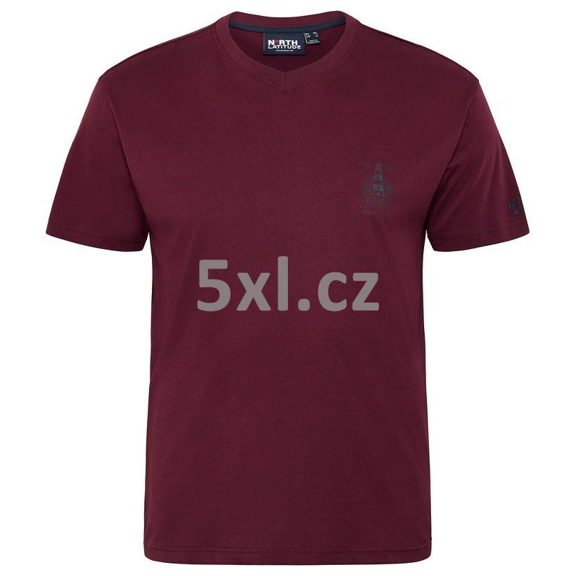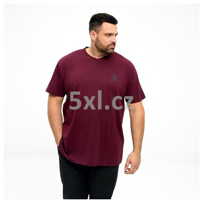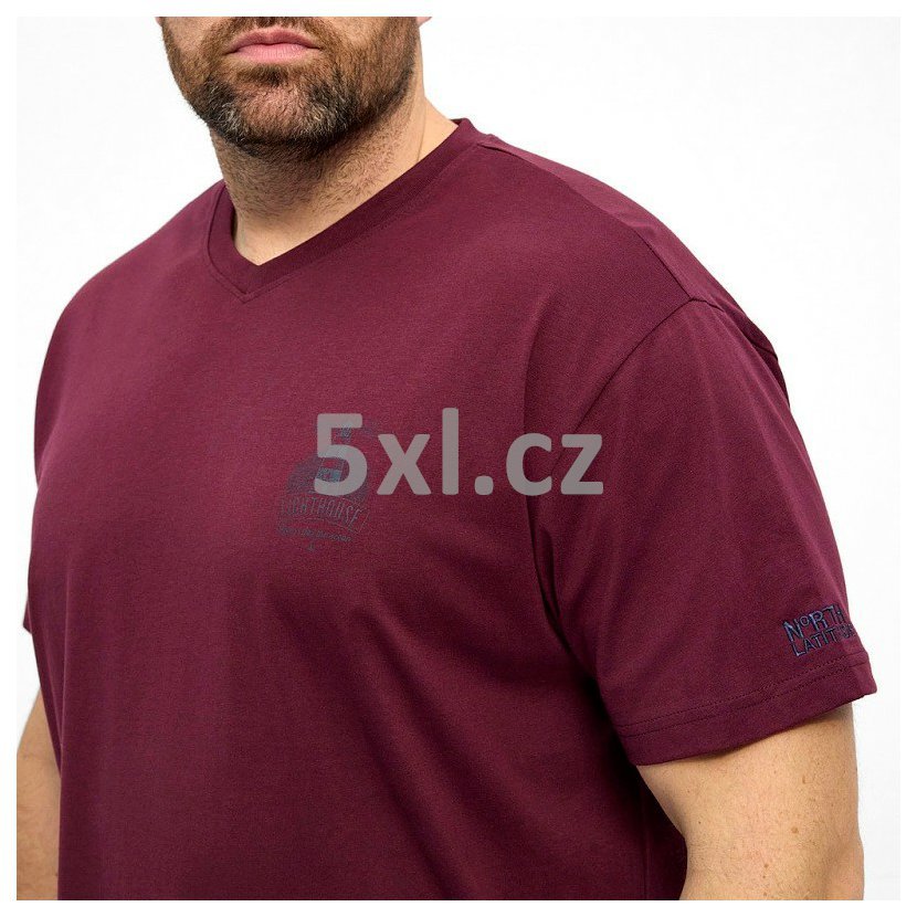 Pánské tričko NORTH 53101 bordó s potiskem krátký rukáv  5XL - 8XL - nadměrná velikost. Výstřih do " V ".