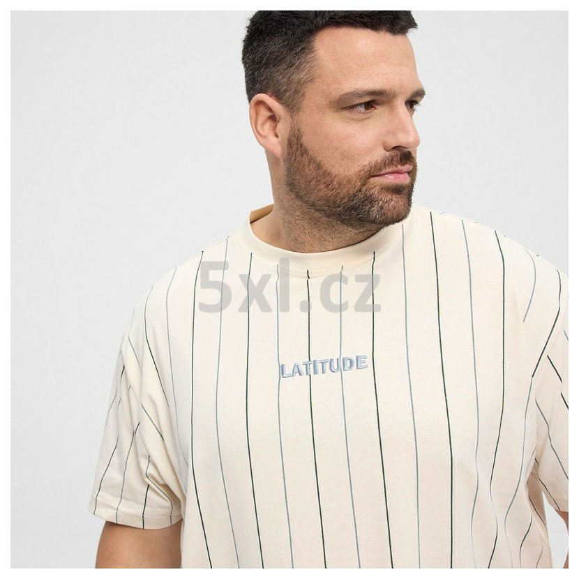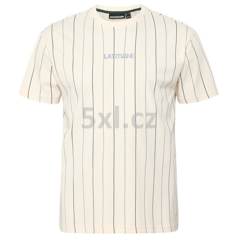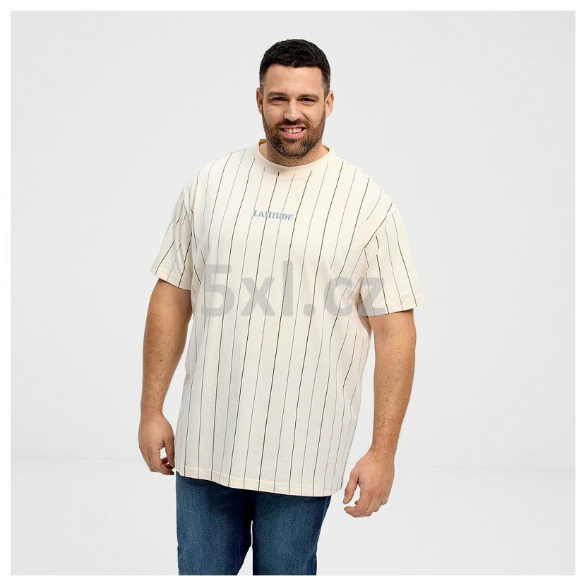 Nadměrné pásnké tričko NORTH 53316 krémové s potiskem pruhy a přední stranou, krátký rukáv, v nadměrné velikosti 5XL, 6XL, 7XL, 8XL. Kulatý výstřih.