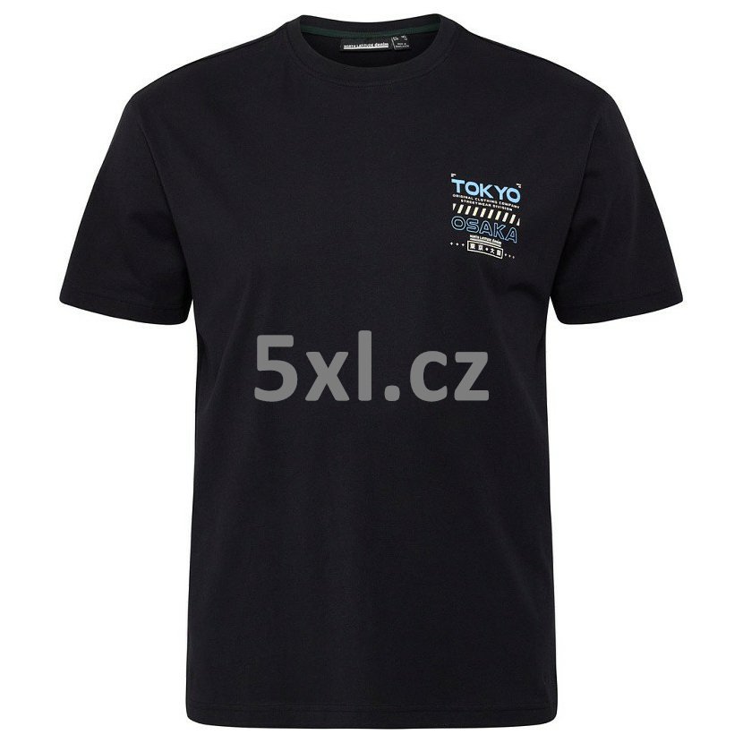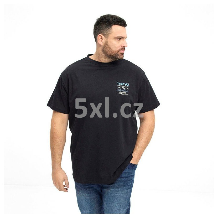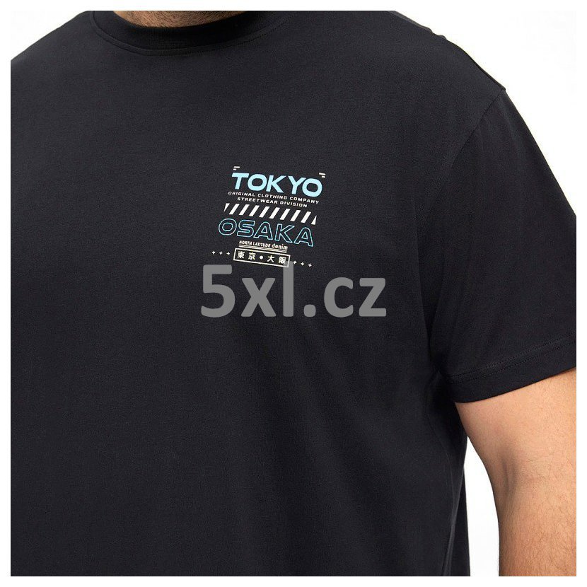 Nadměrné pánské tričko NORTH 53330 černé s potiskem krátký rukáv v nadměrných velikostech 6XL, 7XL, 8XL, 10XL. Atraktivní potisk vlevo na prsou. Kulatý výstřih.