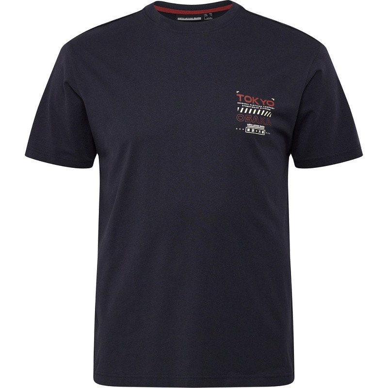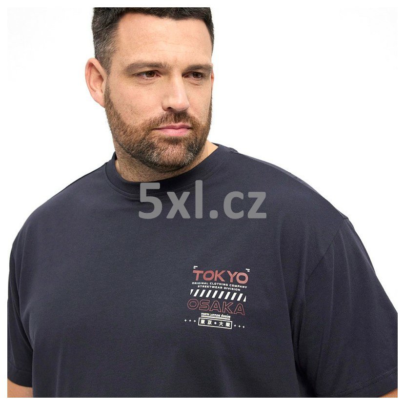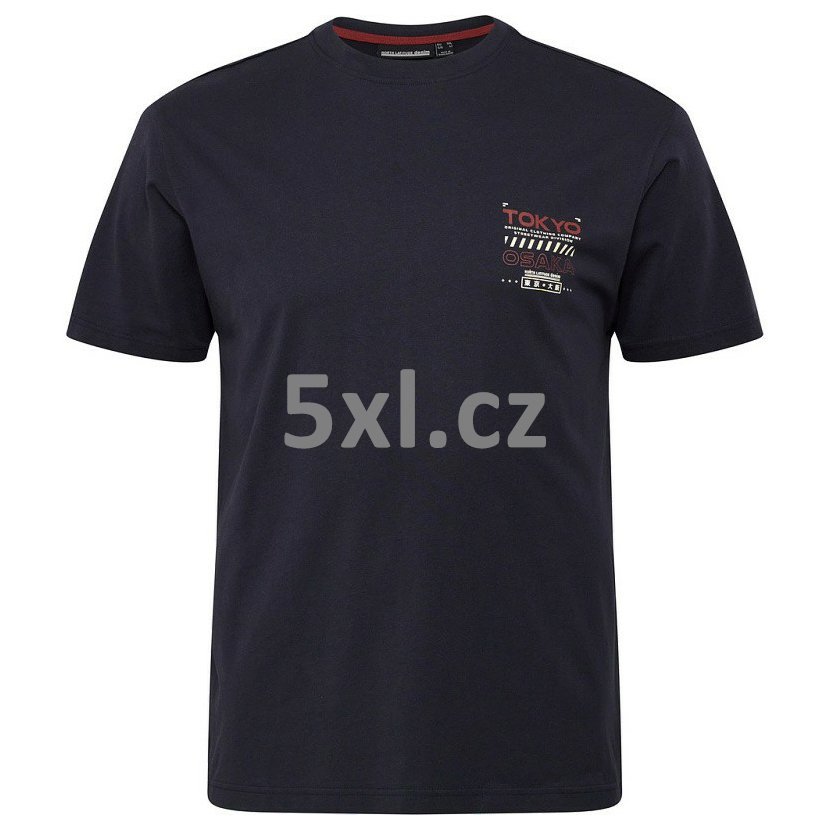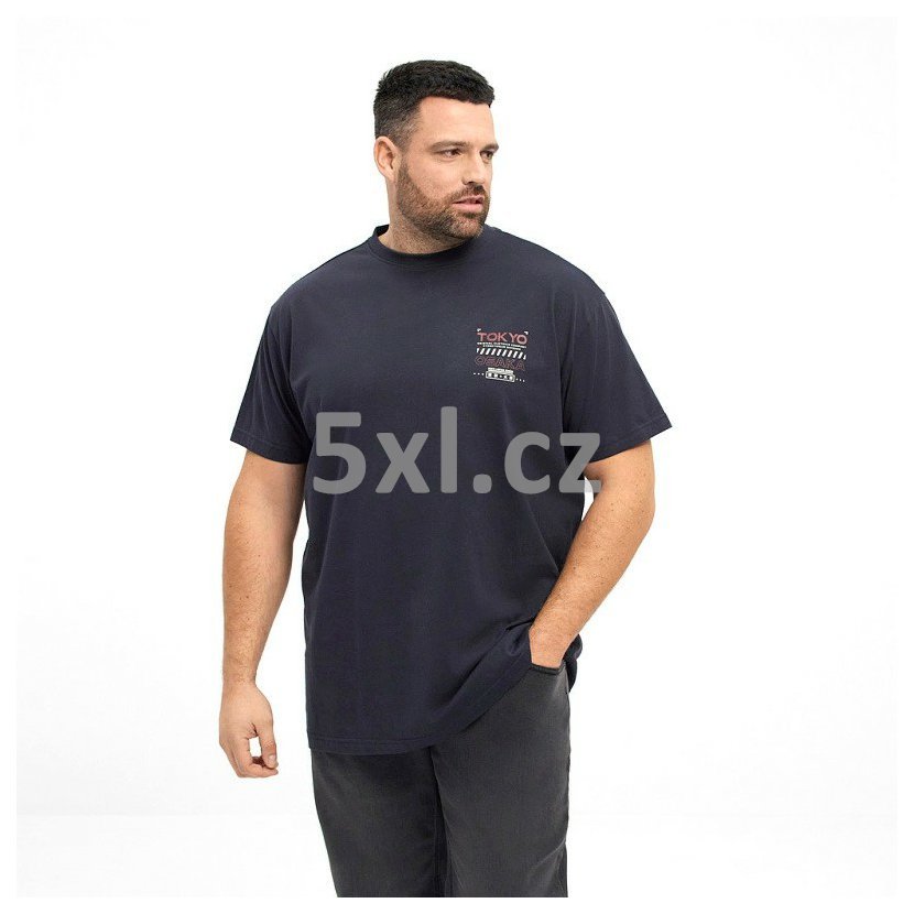 Pánské tričko NORTH 53330 tmavě modré s potiskem krátký rukáv 6XL - 8XL - nadměrná velikost. Potisk vlevo na prsou. Kulatý výstřih.