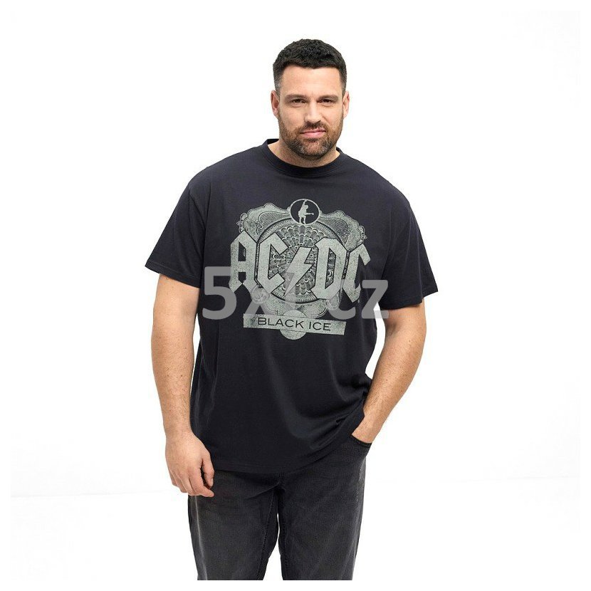 Nadměrné černé pánské tričko NORTH 53354 s licencovaným potiskem AC/DC. Vyrobeno ze 100% bavlny, klasický střih, krátký rukáv, kulatý výstřih. Dostupné v nadměrných velikostech 5XL, 6XL, 7XL, 8XL.