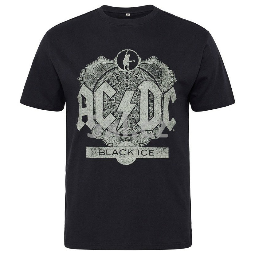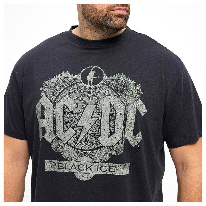 Nadměrné pánské tričko NORTH 53354 AC?DC černé s potiskem krátký rukáv 5XL - 8XL - nadměrná velikost. Kulatý výstřih.