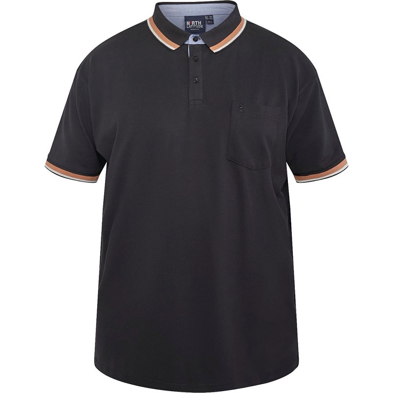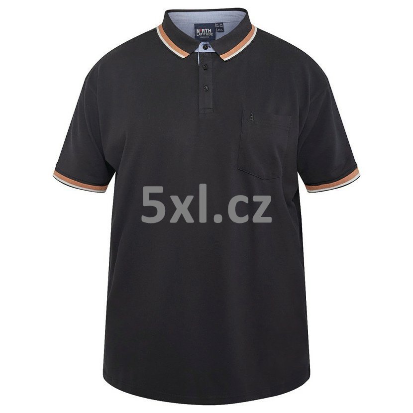 Pánské tričko s límečkem - polokošile NORTH 61128 černé krátký rukáv 5XL - 10XL NORTH